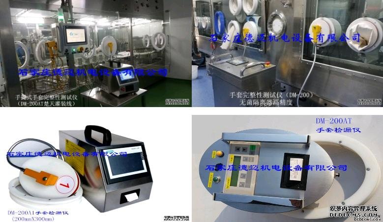 DM系列手套檢漏儀是專(zhuān)門(mén)檢測(cè)手套是否有泄漏的檢漏設(shè)備,主要應(yīng)用于無(wú)菌傳遞艙、負(fù)壓手套箱、無(wú)菌正壓隔離器、無(wú)菌試驗(yàn)隔離器、C-RABS等使用手套的離線在線檢測(cè),不需使用外接氣源,它由高低壓充氣泵、電氣與氣動(dòng)控制組件、傳感器、觸摸屏、手套框鏈接單元、外箱體等幾部分組成。